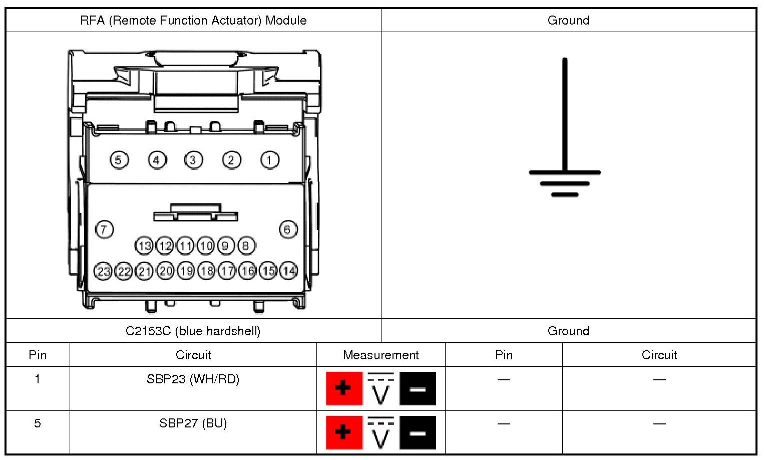 1. CHECK THE RFA (Remote Function Actuator) MODULE VOLTAGE SUPPLY CIRCUITS FOR AN OPEN