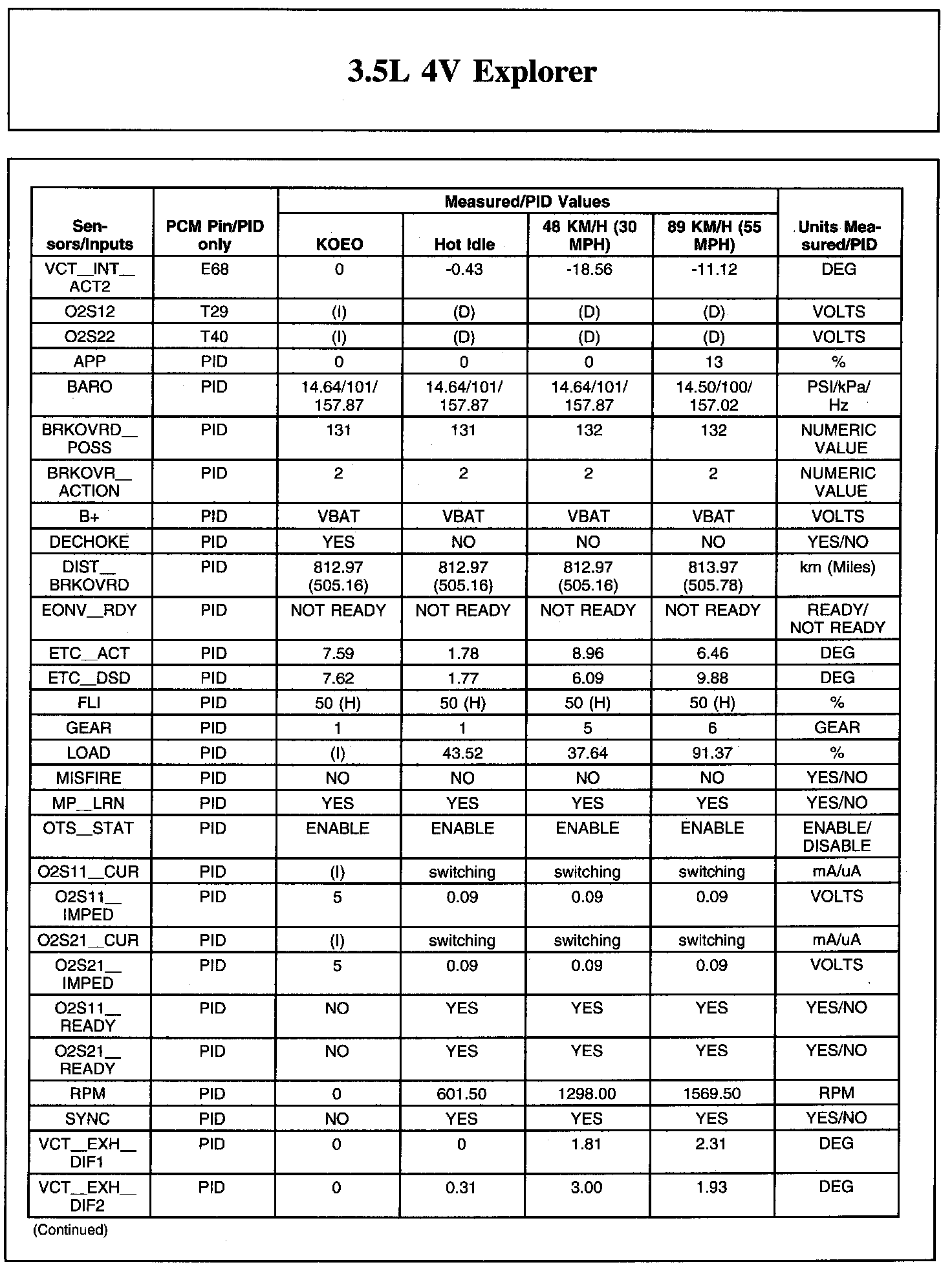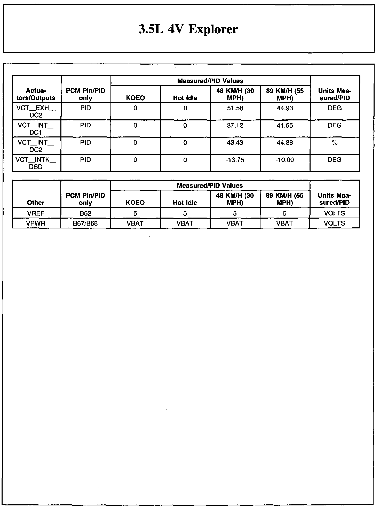 Home >> Ford >> 2011 >> Explorer AWD V6-3.5L >> Repair and Diagnosis >> Powertrain Management >> Computers and Control Systems >> Testing and Inspection >> Scan Tool Testing and Procedures >> Typical Diagnostic Reference Values