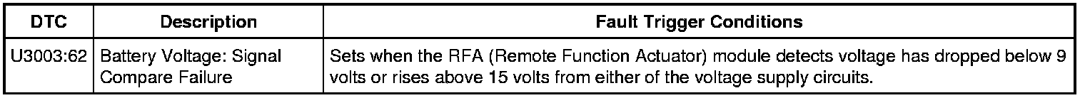 NOTE: DTC (Diagnostic Trouble Code) U3003:62 may be stored in the module memory due to previous battery charging or vehicle jump starting events.