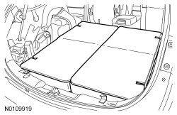 2. NOTICE: Do not lift the load floor flapper panel too far or damage to the wire harness retainers will occur.