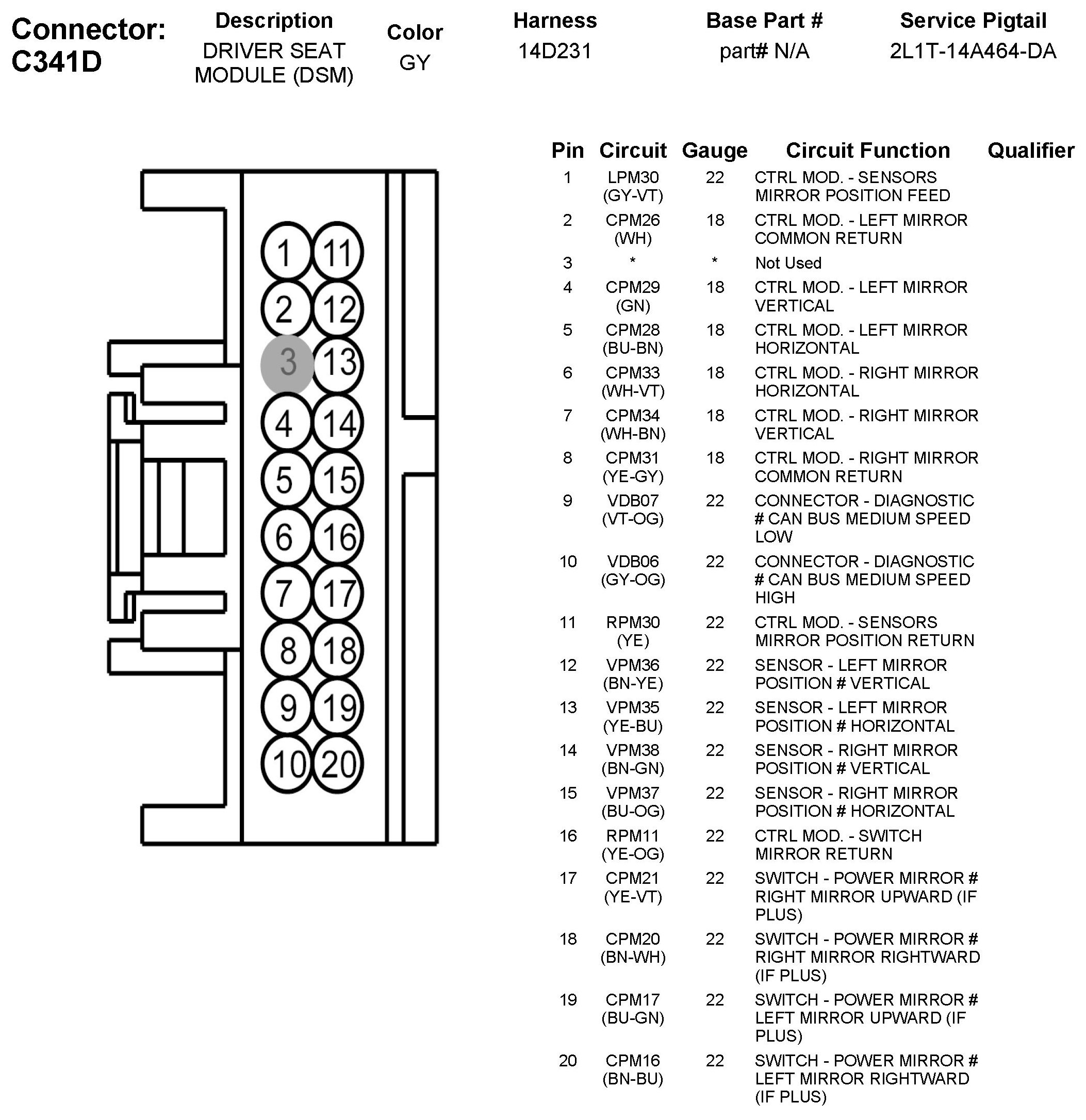 C341D Driver Seat Module (DSM)