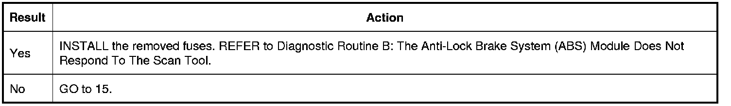 14. CHECK FOR RESTORED NETWORK COMMUNICATION WITH THE ABS (Anti-Lock Brake System) MODULE DISABLED