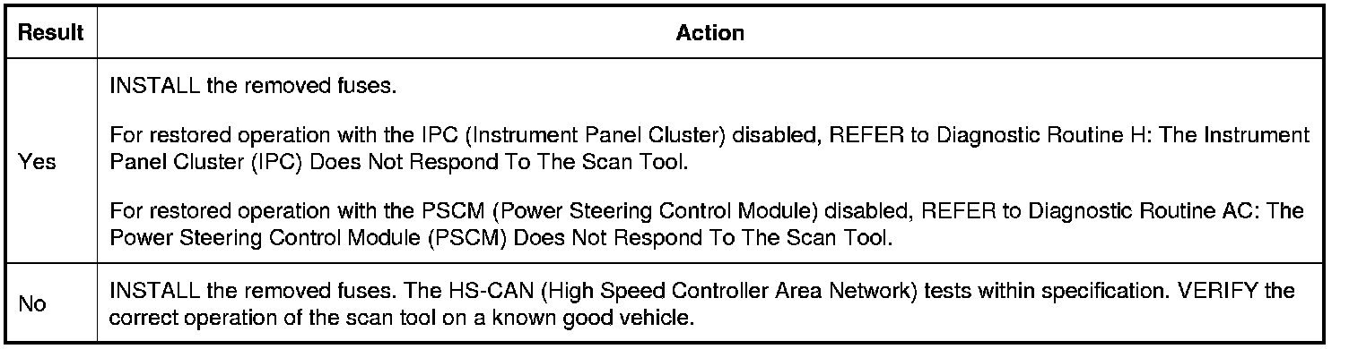 1. Disable modules one at a time until other HS-CAN (High Speed Controller Area Network) modules pass the network test. Skip to the end once network operation is restored.