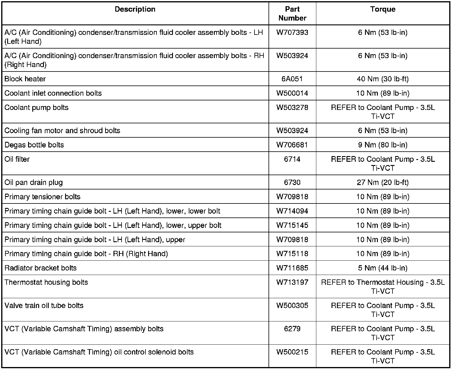 Torque Specifications