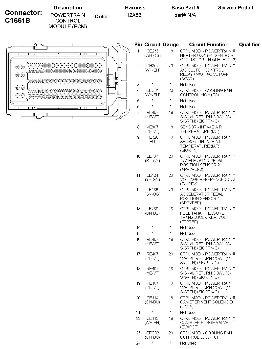 C1551B Powertrain Control Module (PCM)