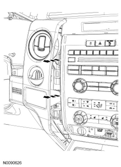 6. Rotate the lower center instrument panel finish panel to disengage the overlapping tabs, and remove the finish panel.