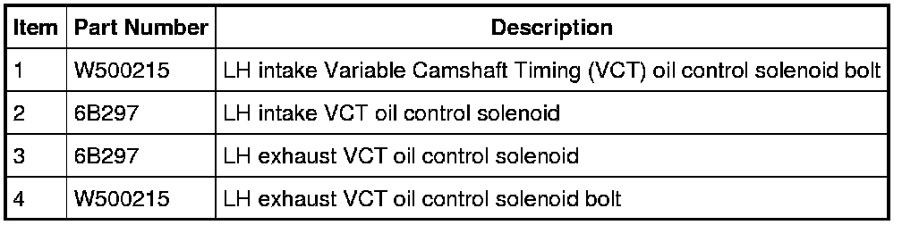 NOTE: It is necessary to remove the RH or LH valve cover to access the Variable Camshaft Timing (VCT) oil control solenoid.