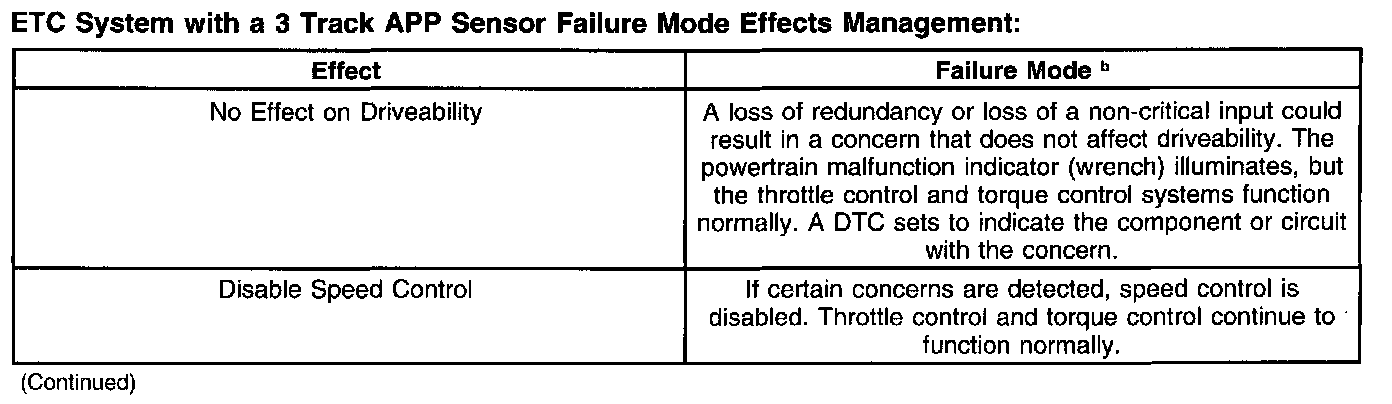 The ETC system illuminates a powertrain malfunction indicator (wrench) on the instrument cluster (IC) or instrument panel cluster (IPC) when a concern is present. Concerns are accompanied by diagnostic trouble codes (DTCs) and may also illuminate the malfunction indicator lamp (MIL).
