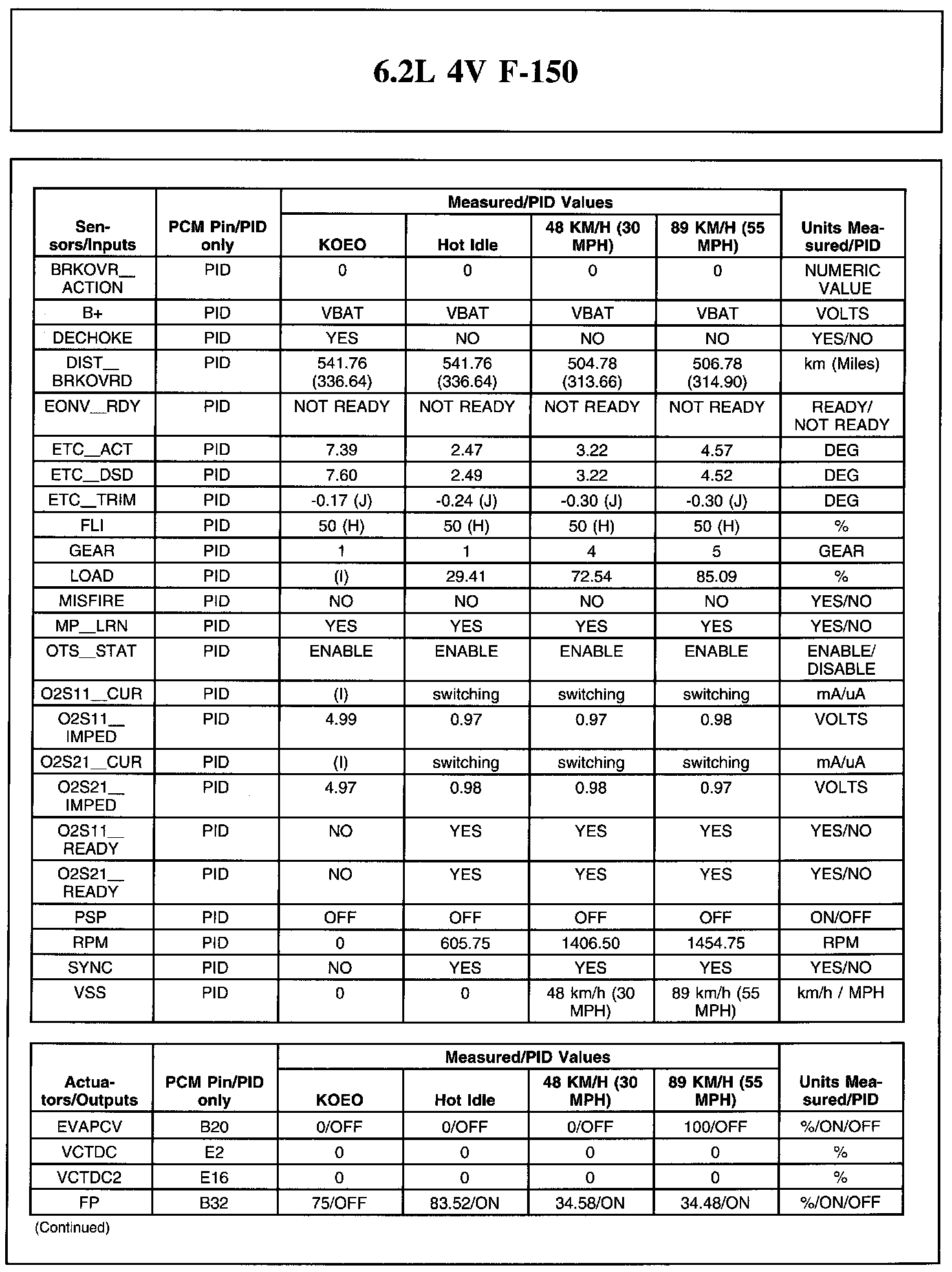 The Typical Diagnostic Reference Value Charts do not display fault parameter identifications (PIDs). These are PIDs which indicate a hard fault with the circuit. They display a value of YES or NO and are PIDs ending with the letter F.