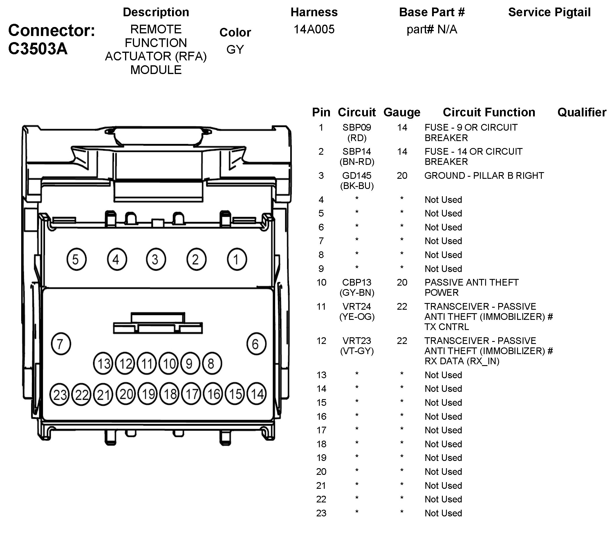 Home >> Ford >> 2011 >> Fiesta L4-1.6L >> Repair and Diagnosis >> Body and Frame >> Locks >> Keyless Entry >> Keyless Starting System >> Keyless Start Transmitter >> Diagrams >> C3503A Remote Function Actuator (RFA) Module