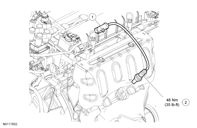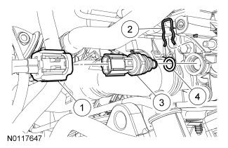 NOTE: The correct torque wrench setting must be calculated when using a commercially available exhaust gas sensor socket to install the HO2S.