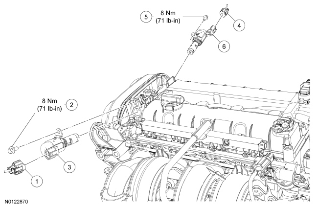 NOTE: The intake manifold must be removed to access the KS. For additional information, refer to Engine - 1.6L Service and Repair.