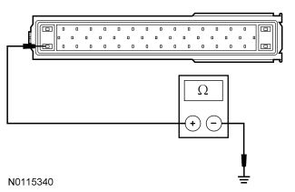 - Measure the resistance between the ABS module, circuit GD123 (BK/GY), harness side and ground.
