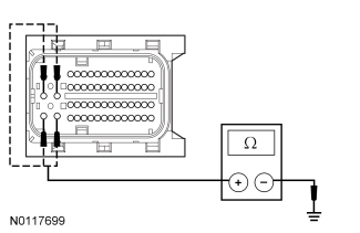 - Measure the resistance between the TCM, harness side and ground as follows: