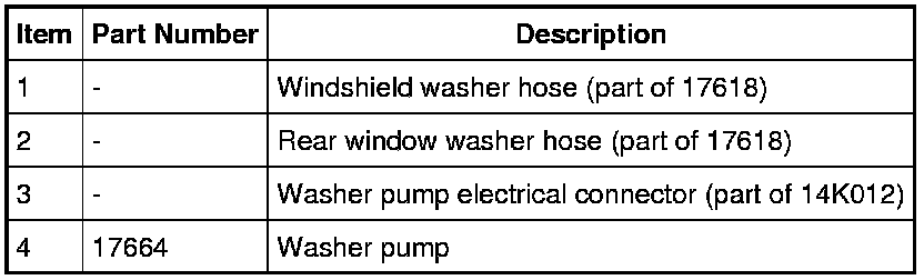 5 door washer pump shown, 4 door washer pump similar.