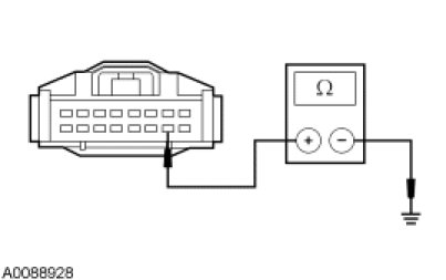 - Measure the resistance between the 4X4 control module C281-15, circuit GD145 (BK/BU), harness side and ground.