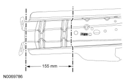 Scribe a cut-line 155 mm (6.1 in) from the front bumper bracket on the outer frame rail. Using a plasma cutter, cut-off wheel or reciprocating saw, cut off the front rail inner and outer assemblies along the scribe line.