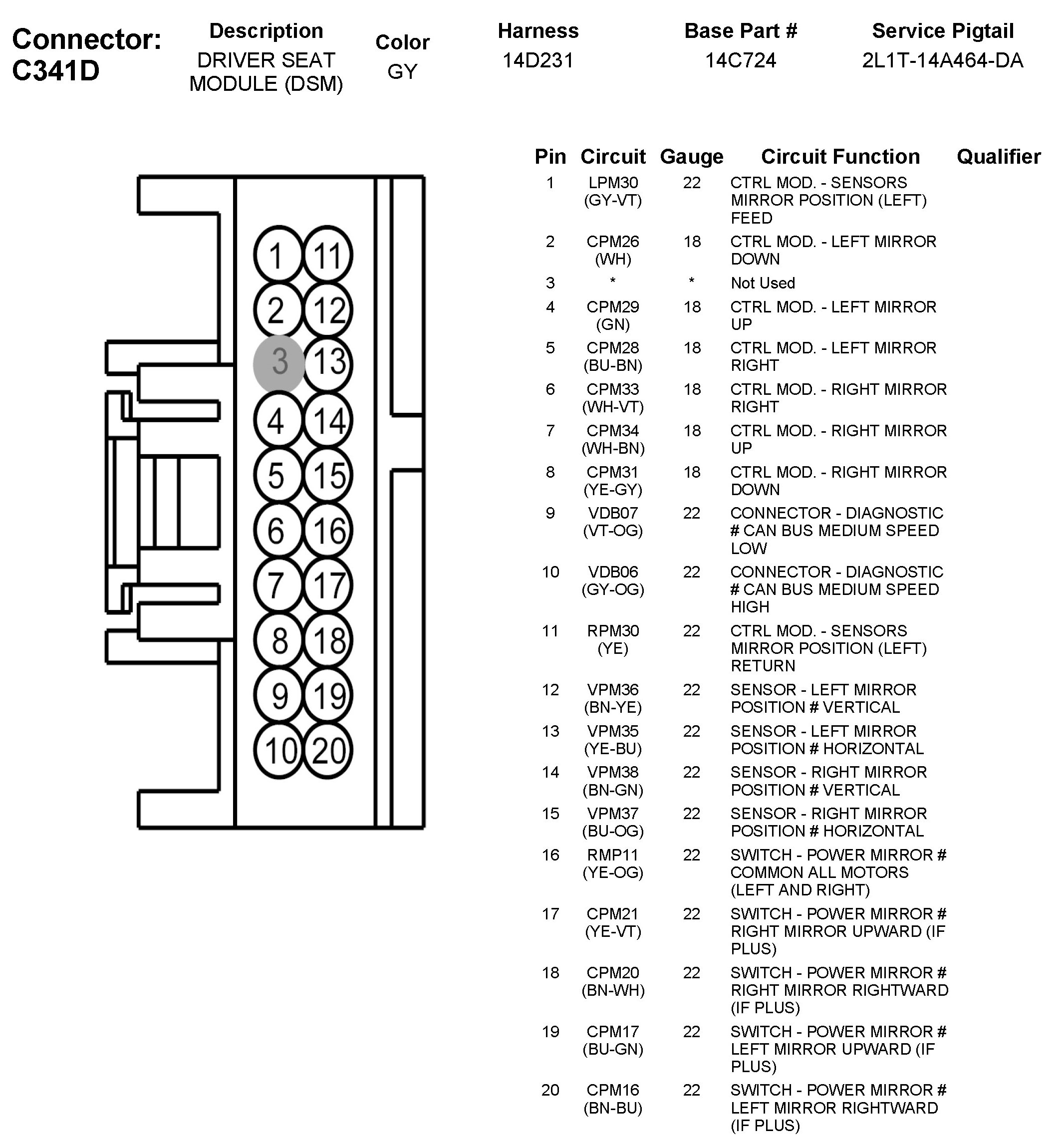 C341D Driver Seat Module (DSM)