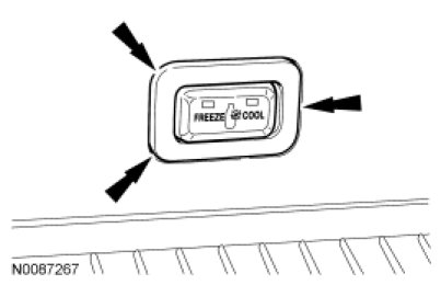 2. Using a small flat blade screwdriver, gently press the 3 refrigerator switch bezel retaining tabs inward at the locations shown, while pulling the refrigerator switch bezel outward.