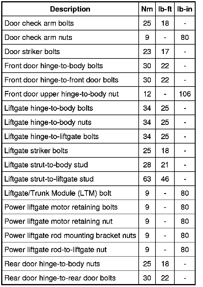 Torque Specifications