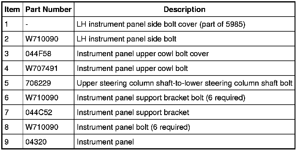 Instrument Panel Mounting Fasteners