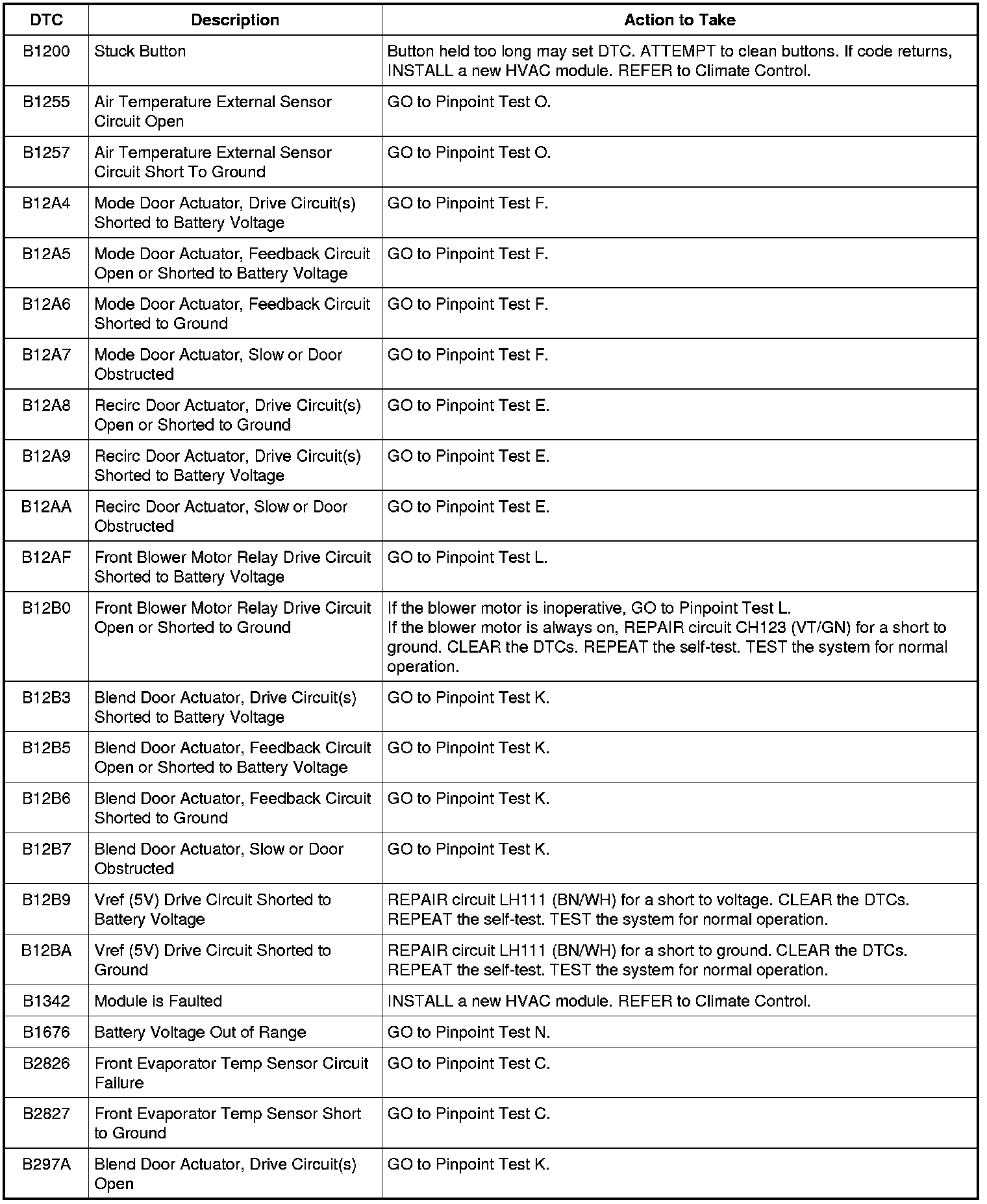 HVAC Module DTC Chart