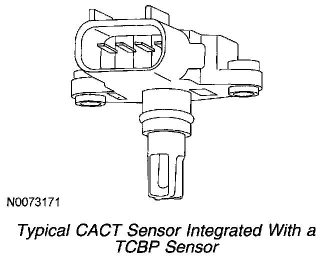 The CACT sensor is located in the intake air tube between the charge air cooler (CAC) and the throttle body. The CACT sensor measures the throttle inlet temperature. The PCM uses the CACT sensor information to refine the estimate of the airflow rate through the throttle and to determine the desired boost pressure. The CACT sensor for a speed density system is integrated with the turbocharger boost pressure (TCBP) sensor.