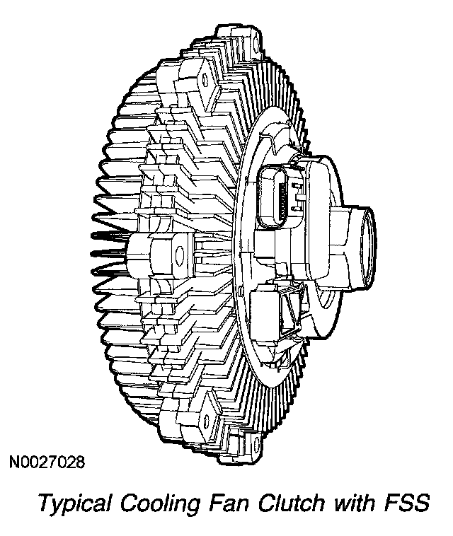 The FSS is a Hall effect sensor that measures the cooling fan clutch speed by generating a waveform with a frequency proportional to the fan speed. If the cooling fan clutch is moving at a relatively low speed, the sensor produces a signal with a low frequency. As the cooling fan clutch speed increases, the sensor generates a signal with a higher frequency. The PCM uses the frequency signal generated by the FSS as a feedback for closed loop control of the cooling fan clutch. For additional information on the cooling fan clutch, refer to the Cooling Fan Clutch.