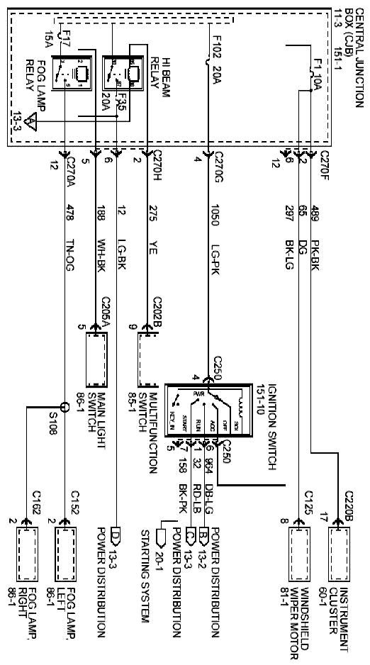 Each set normally starts with the component that powers the circuit, such as a fuse or the ignition switch. Current flow is shown from the power source at the top of the diagram to ground at the bottom of the diagram. A full representation of the power supply of a fuse or the power distribution from a fuse to various components is given in the Power and Ground Distribution Diagrams. Full representation of the ground connections are shown in the Power and Ground Distribution Diagrams.