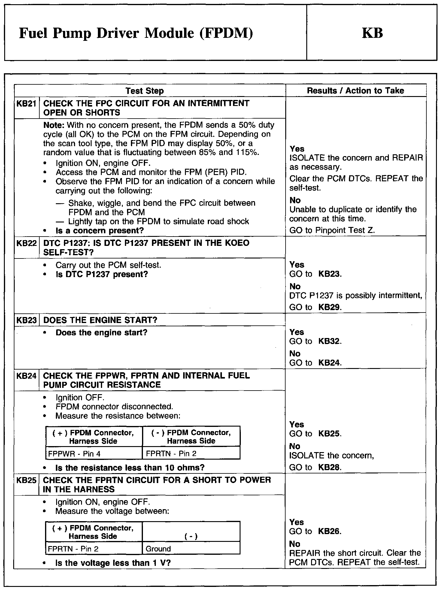 PINPOINT TEST KB: FUEL PUMP DRIVER MODULE (FPDM)