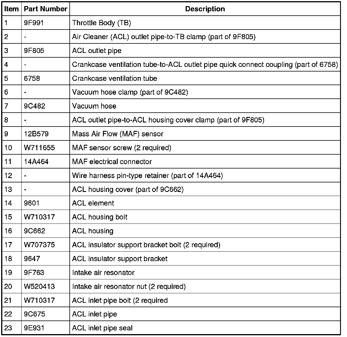 Intake Air System Components - Exploded View