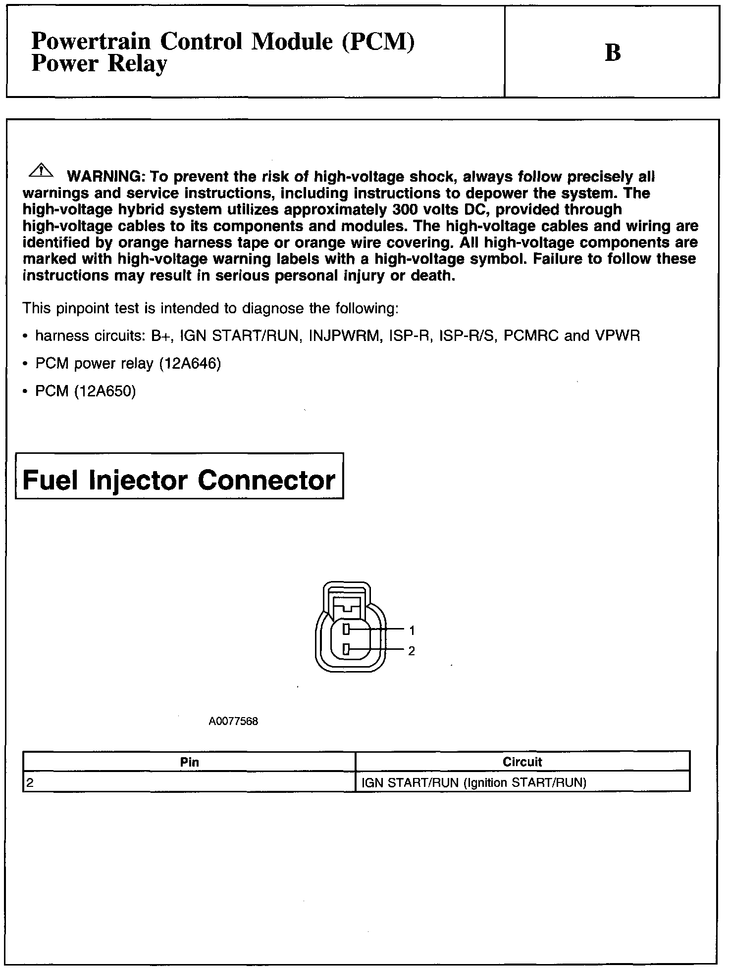 Test B: Powertrain Control Module (PCM) Power Relay