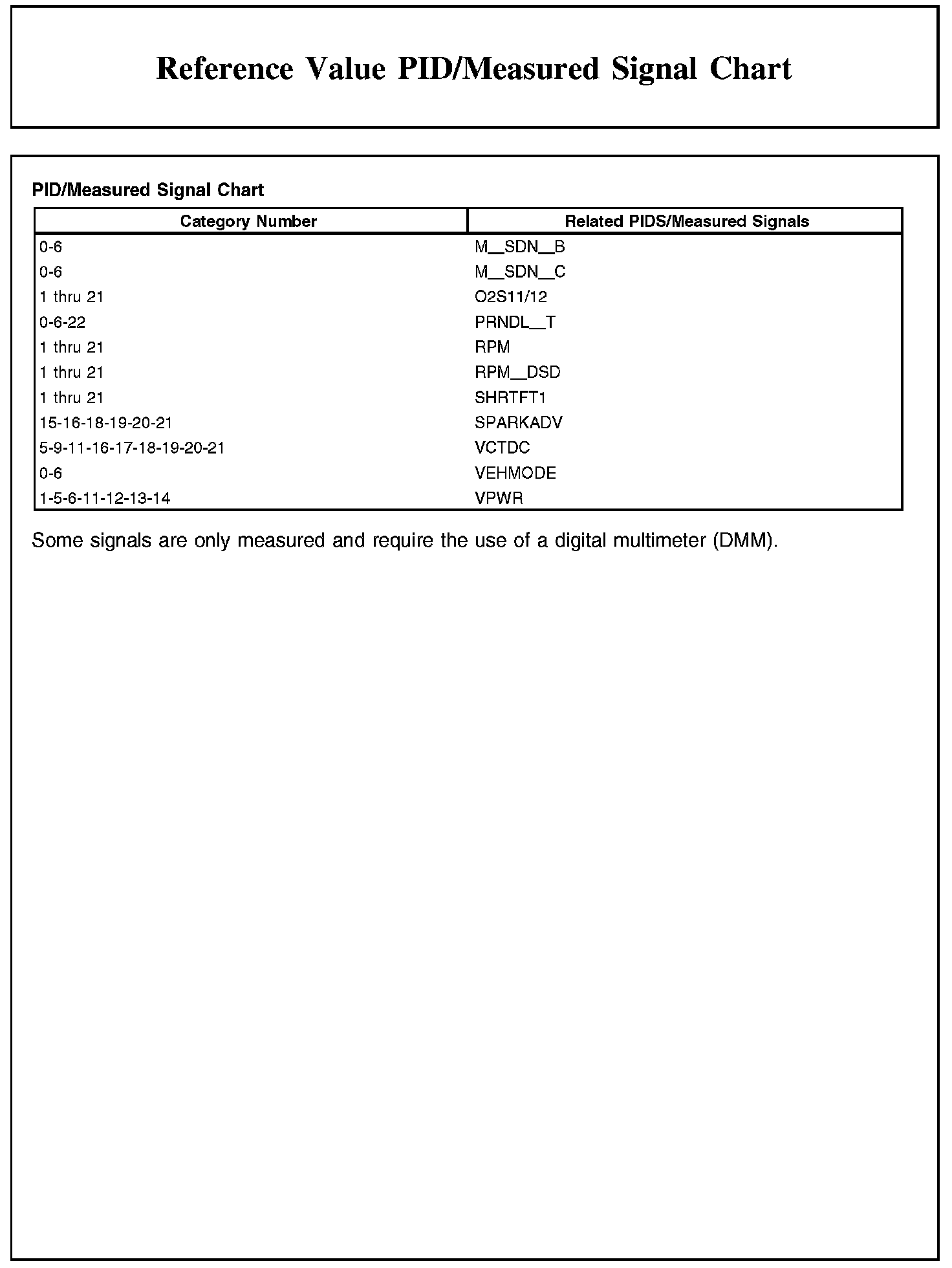 REFERENCE VALUE PID/MEASURED SIGNAL CHART
