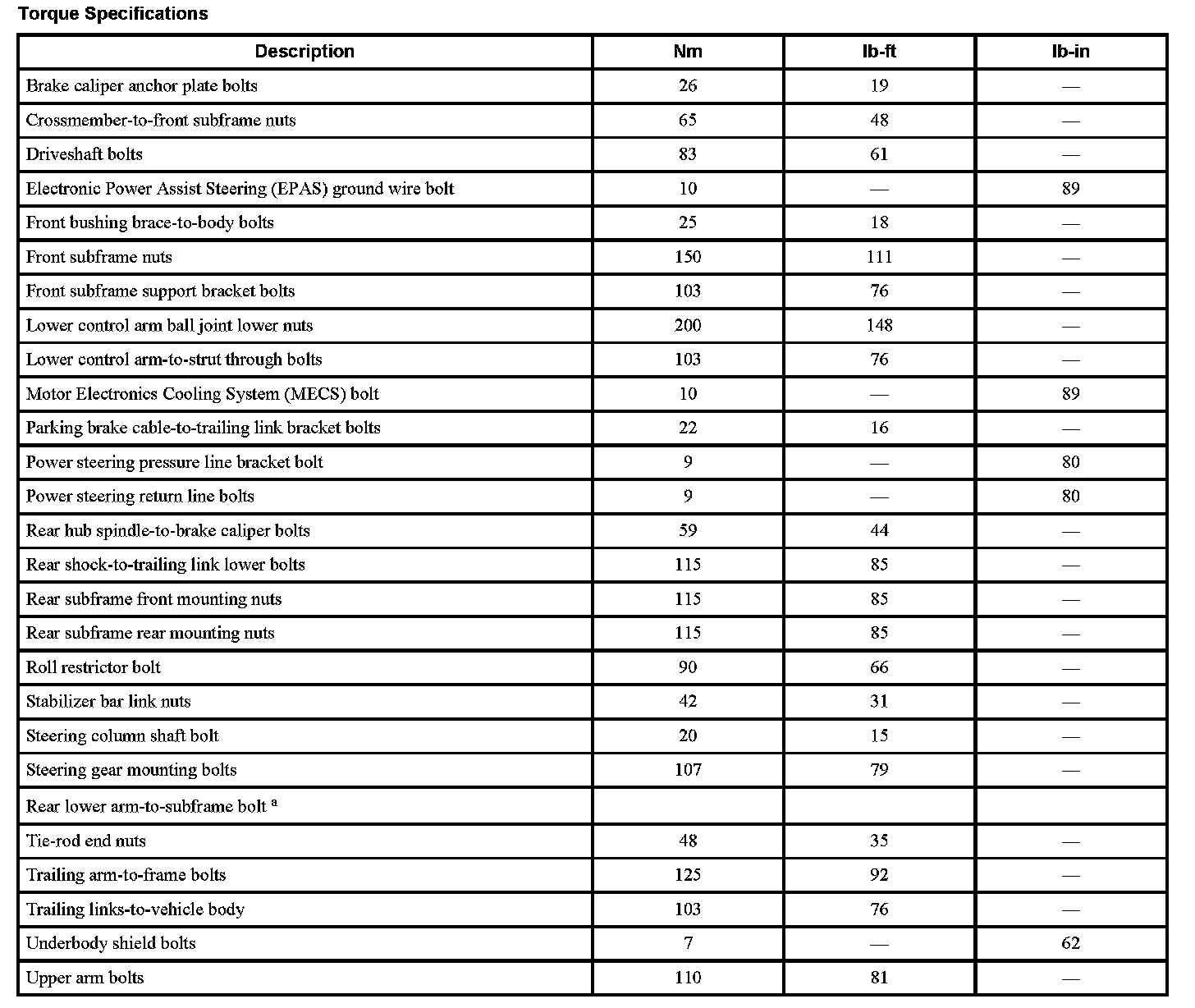 Torque Specifications: