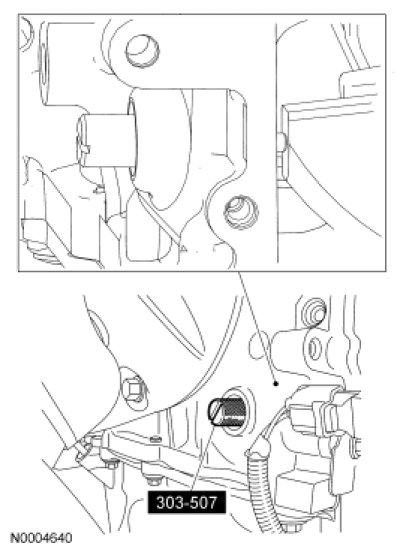 NOTICE: Do not loosen or remove the crankshaft pulley bolt without first installing the special tools as instructed in this procedure. The crankshaft pulley and the crankshaft timing sprocket are not keyed to the crankshaft. The crankshaft, the crankshaft sprocket and the pulley are fitted together by friction, using diamond washers between the flange faces on each part. For that reason, the crankshaft sprocket is also unfastened if the pulley bolt is loosened. Before any repair requiring loosening or removal of the crankshaft pulley bolt, the crankshaft and camshafts must be locked in place by the special service tools, otherwise severe engine damage can occur.
