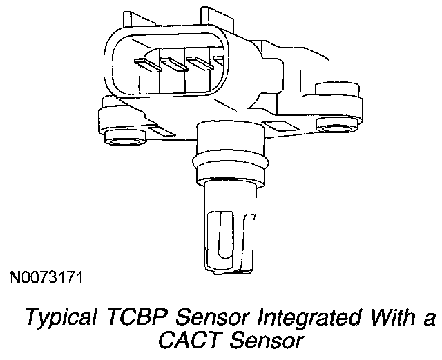 The TCBP sensor is located in the intake air tube between the CAC and the throttle body. The TCBP sensor measures the throttle inlet pressure. The PCM uses the information from the TCBP sensor to refine the estimate of the airflow rate through the throttle and to determine the desired boost pressure. The TCBP sensor for a speed density system is integrated with the CACT sensor.