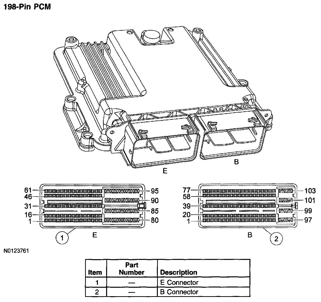 The center of the engine control (EC) system is a microprocessor called the PCM. The PCM receives input from sensors and other electronic components (switches, relays). Based on the information received and programmed into its memory, the PCM generates output signals to control various relays, solenoids and actuators. There are several different types of PCMs in use for this model year. Refer to the Vehicle PCM Application Table below for PCM types and their applications.