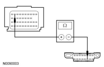 - Measure the resistance between the RCM C310b-10, circuit VDB04 (WH/BU), harness side and the Data Link Connector (DLC) C251-6, circuit VDB04 (WH/BU), harness side.