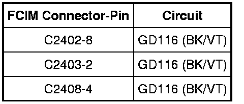 - Measure the resistance between the FCIM, harness side and ground as follows: