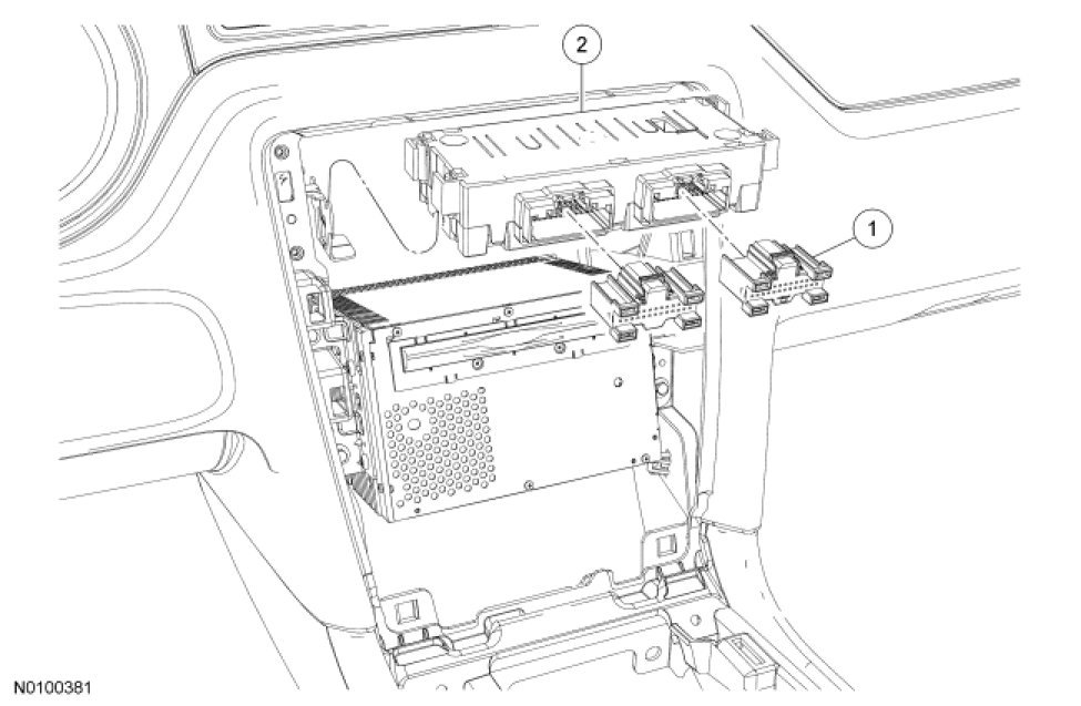 1. Remove the Front Display Interface Module (FDIM). For additional information, refer to Information and Entertainment Systems Front Display Interface Module (FDIM).