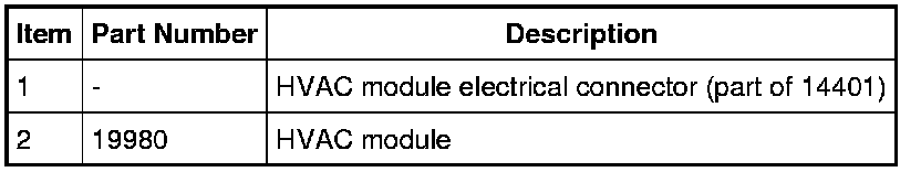 2. NOTE: Vehicles equipped with Electronic Automatic Temperature Control (EATC) have 2 HVAC module electrical connectors. Vehicles equipped with Electronic Manual Temperature Control (EMTC) have 1 HVAC module electrical connector.