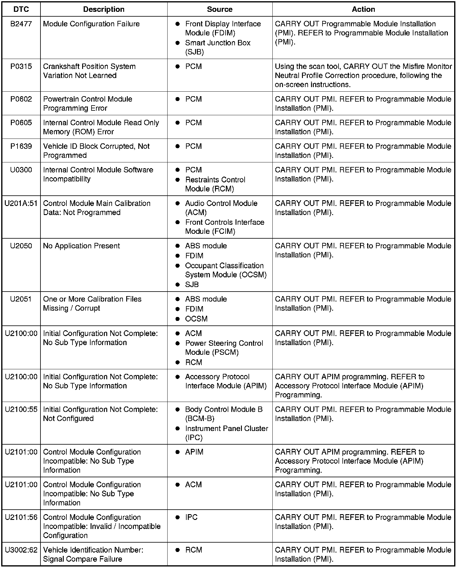 Home >> Ford >> 2011 >> Mustang V6-3.7L >> Repair and Diagnosis >> Powertrain Management >> Computers and Control Systems >> Information Bus >> Testing and Inspection >> Diagnostic Trouble Code Tests and Associated Procedures >> Module Configuration