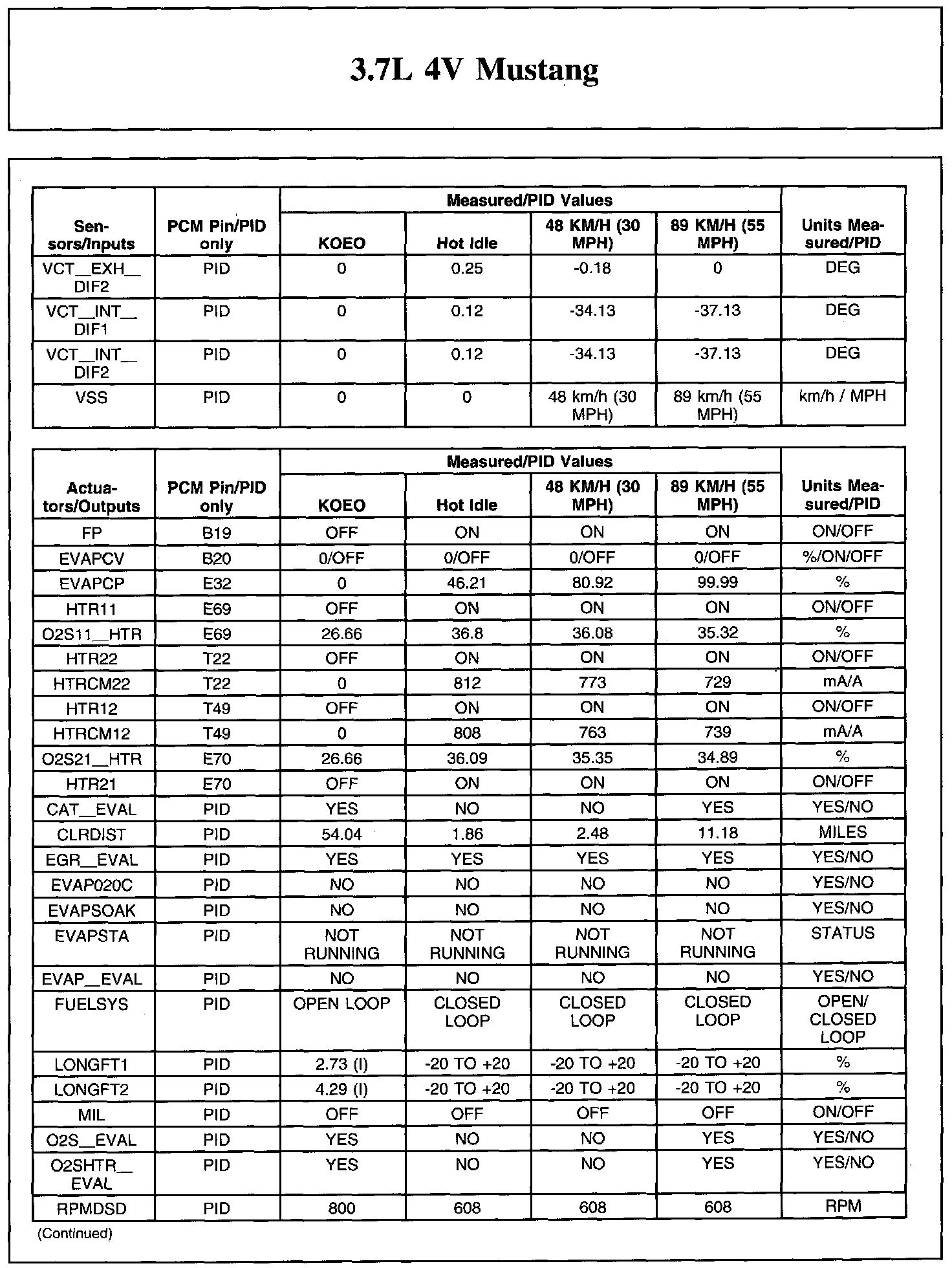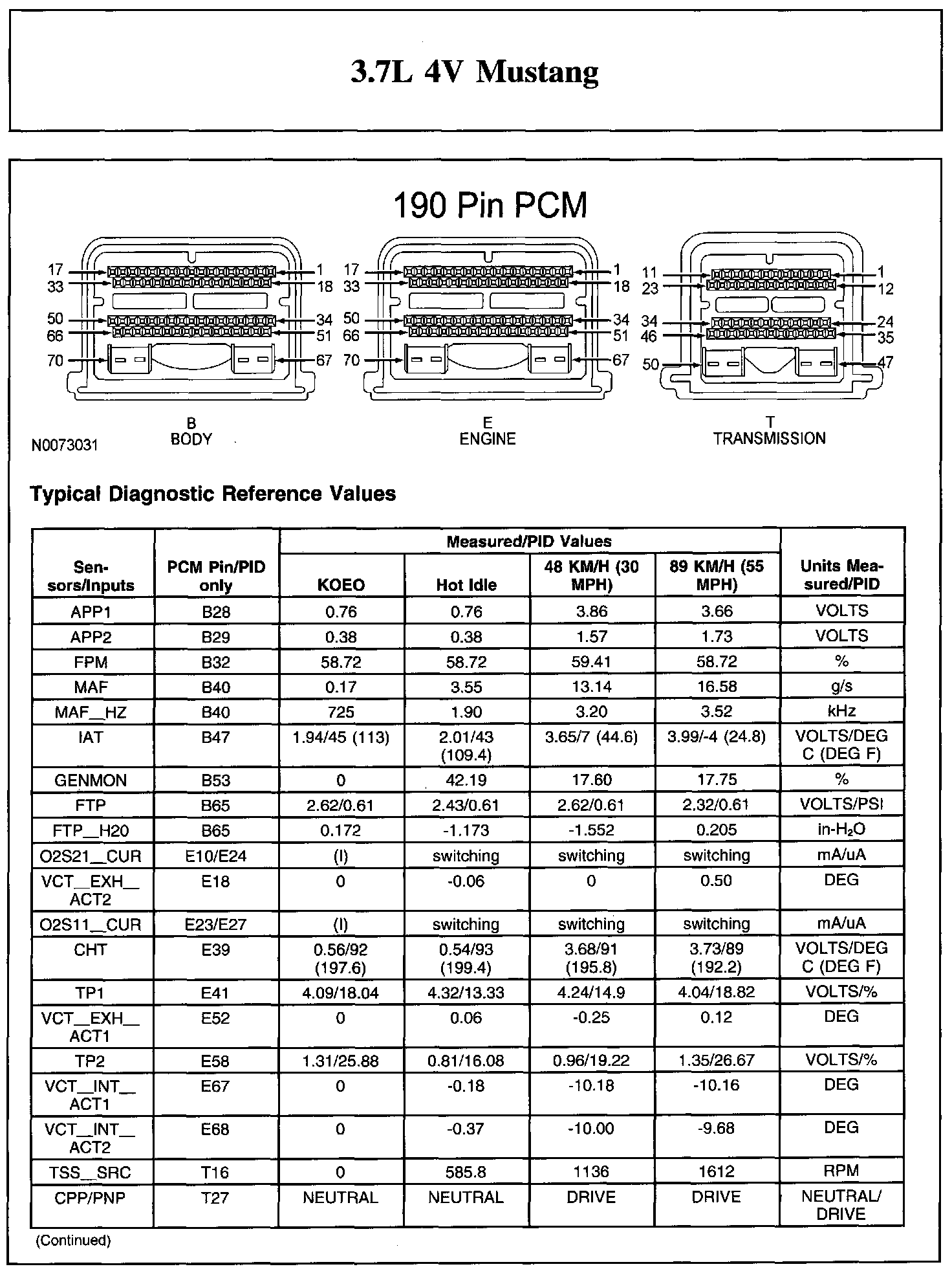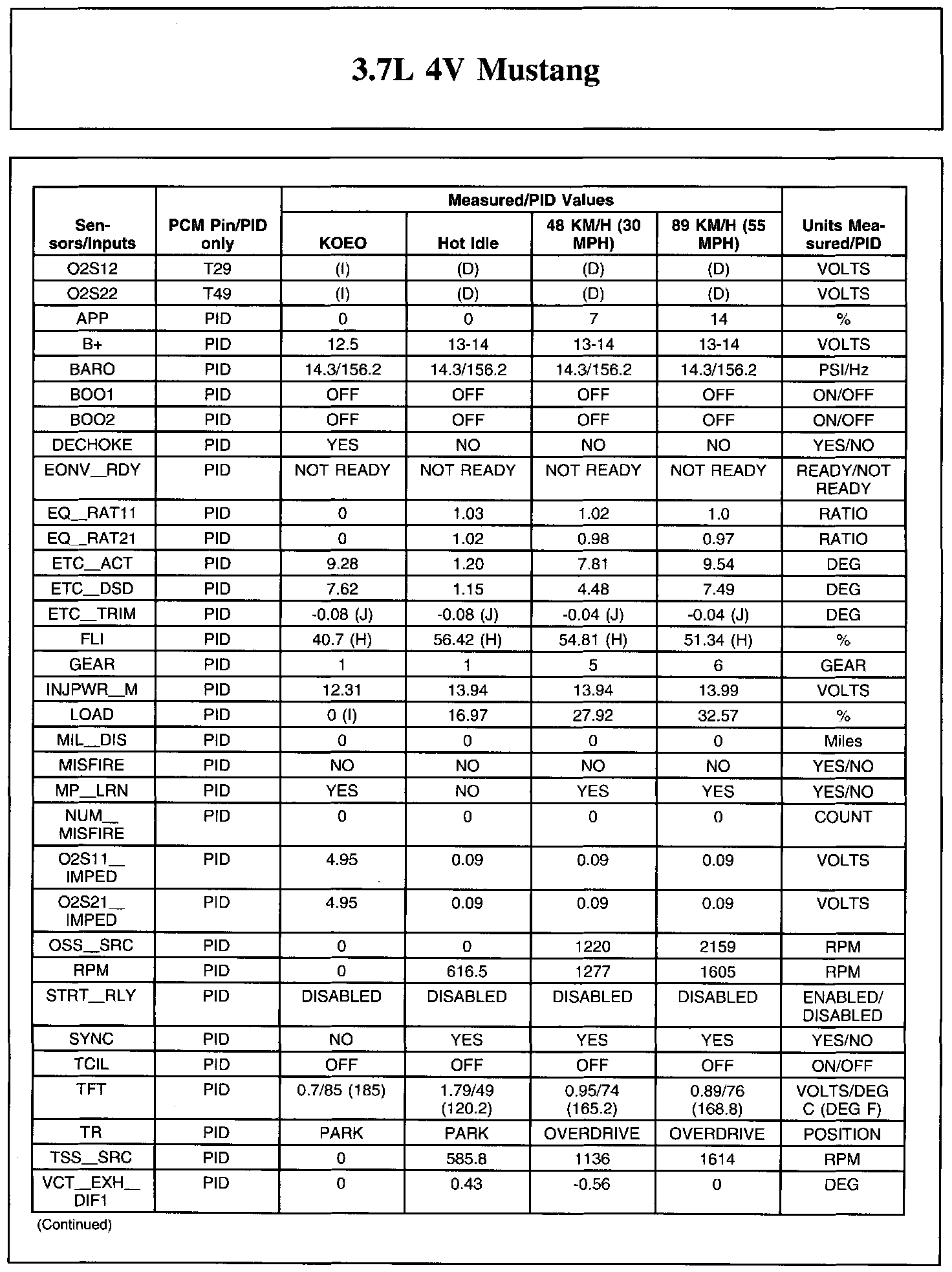 Home >> Ford >> 2011 >> Mustang V6-3.7L >> Repair and Diagnosis >> Powertrain Management >> Computers and Control Systems >> Testing and Inspection >> Scan Tool Testing and Procedures >> Typical Diagnostic Reference Values