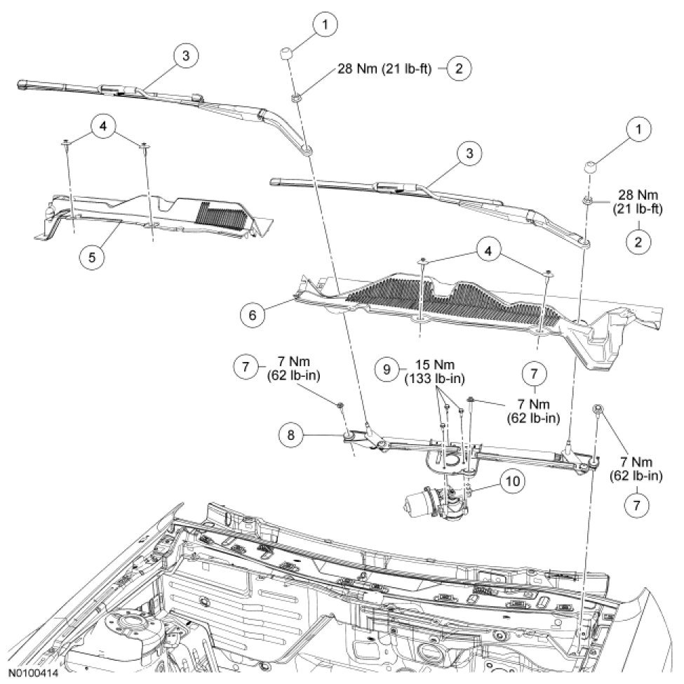 Wiper and Washer System - Exploded View