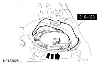 14. NOTE: Inspect the surfaces of the FP module flange and fuel tank O-ring seal contact surfaces. Do not polish or adjust the O-ring seal contact area of the fuel tank flange or the fuel tank. Install a new FP module or fuel tank if the O-ring seal contact area is bent, scratched or corroded.