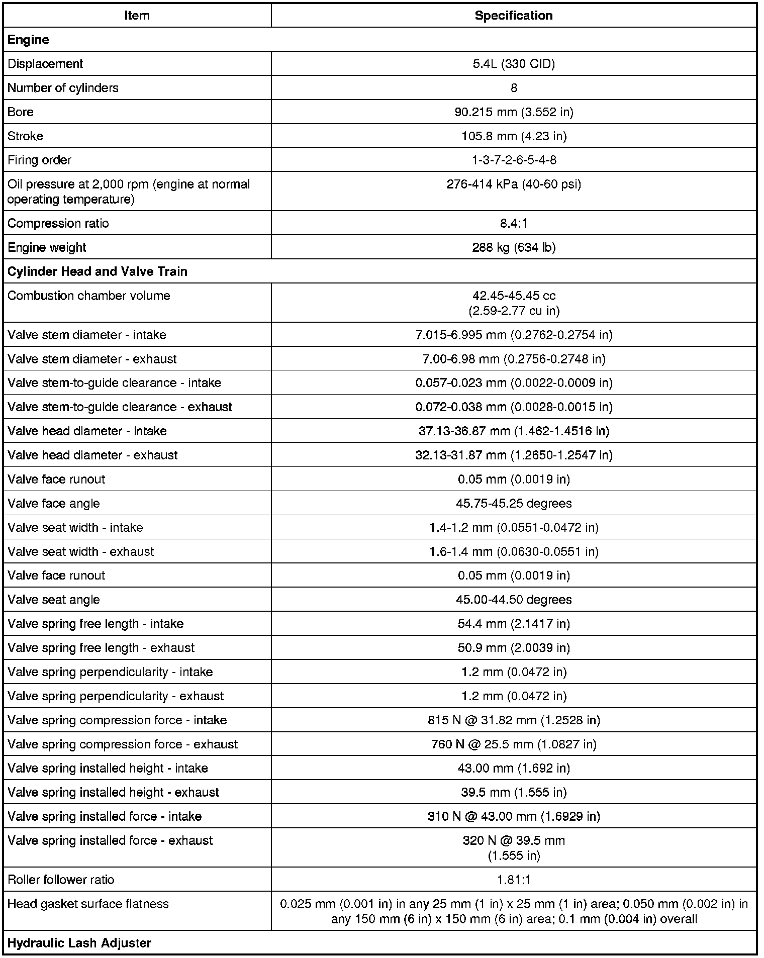 Intake Manifold Specifications