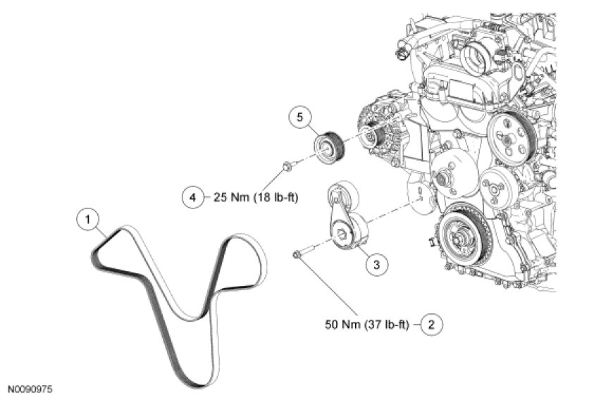 Front End Accessory Drive (FEAD) Exploded View - 2.3L without A/C