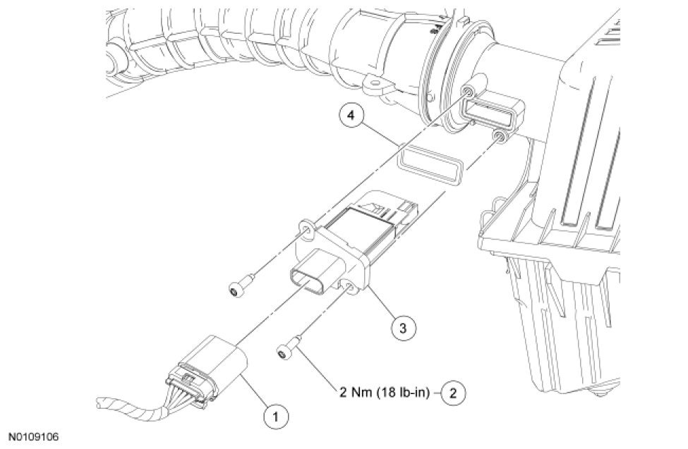 1. Disconnect the Mass Air Flow (MAF) sensor electrical connector.