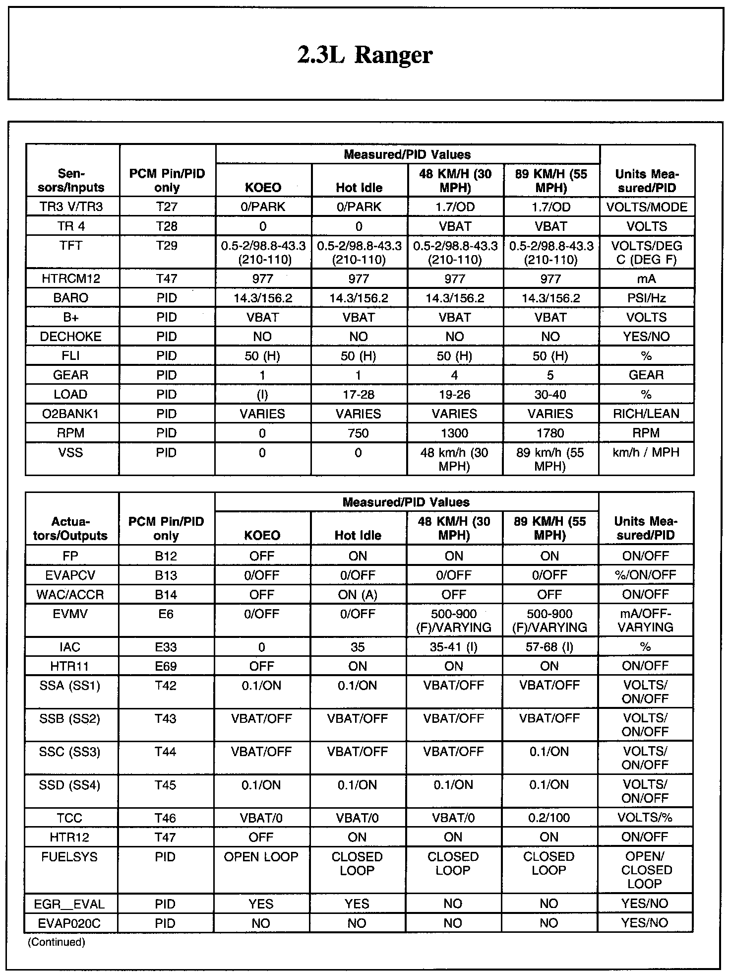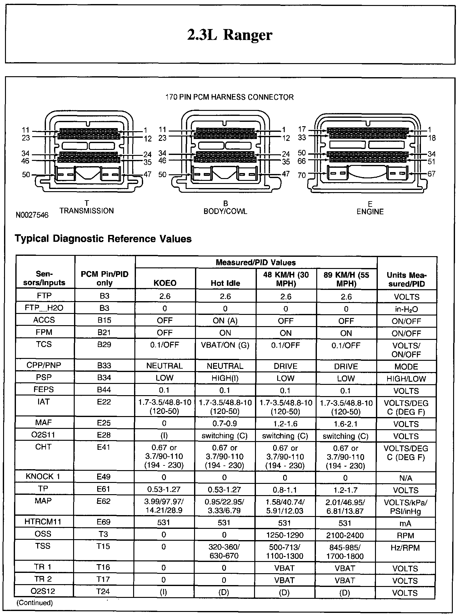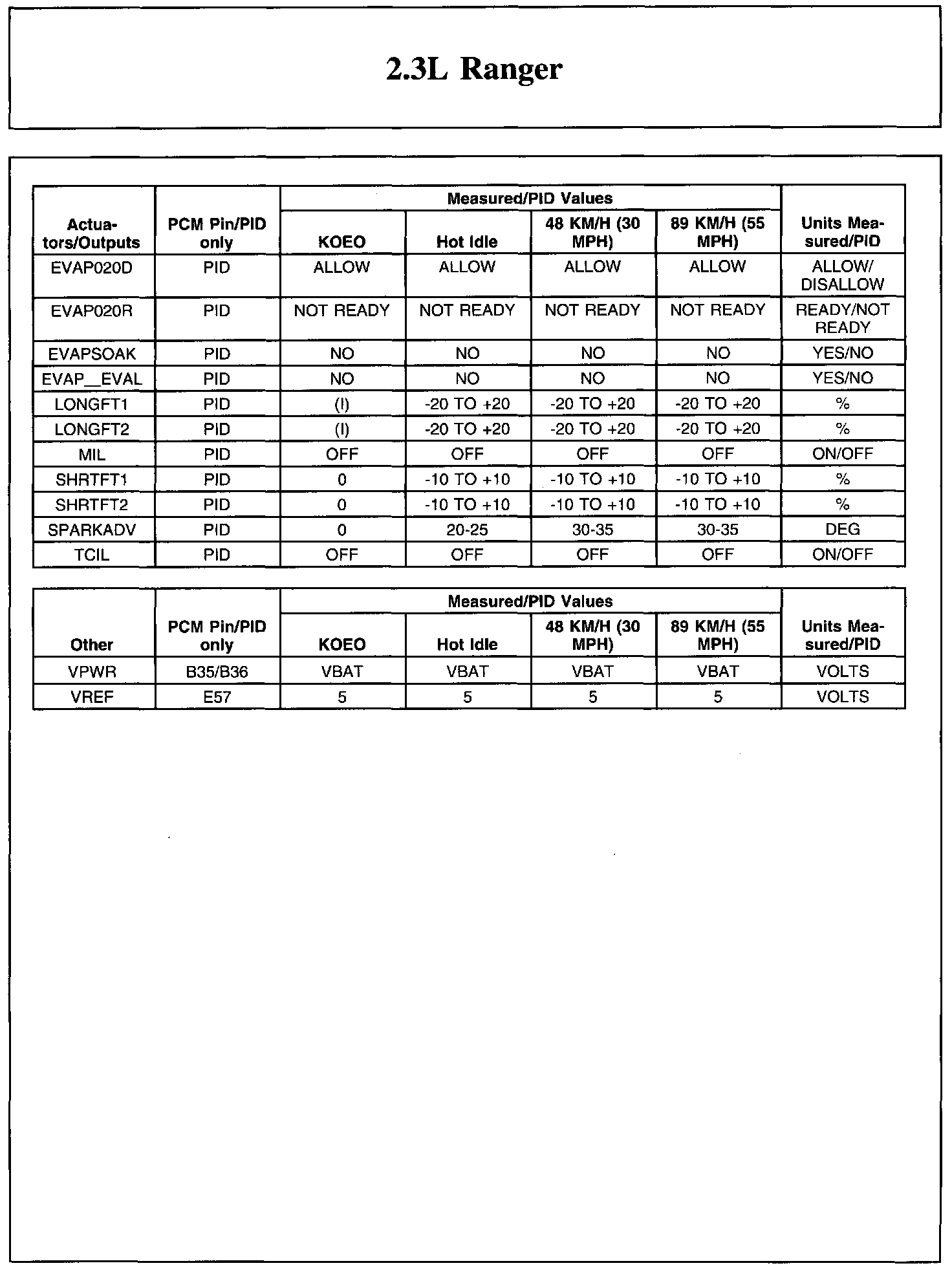 Home >> Ford >> 2011 >> Ranger 2WD L4-2.3L >> Repair and Diagnosis >> Powertrain Management >> Computers and Control Systems >> Testing and Inspection >> Scan Tool Testing and Procedures >> Typical Diagnostic Reference Values