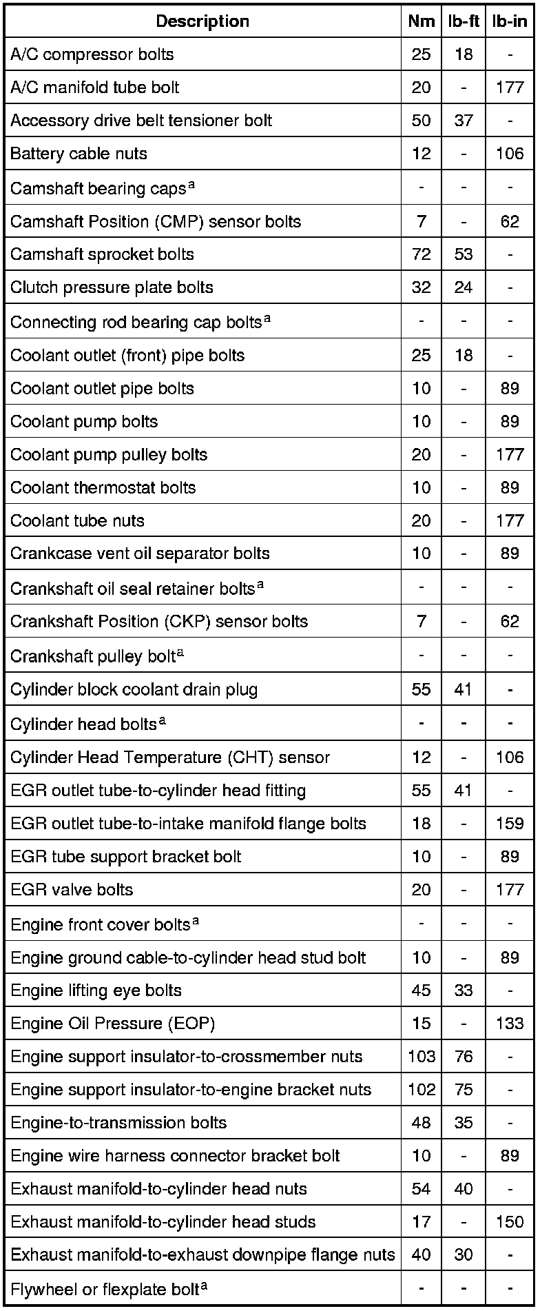 Torque Specifications